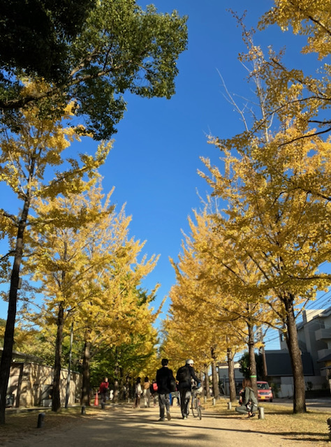 学びの森のイチョウ並木が黄色くきれいに色づいてます。